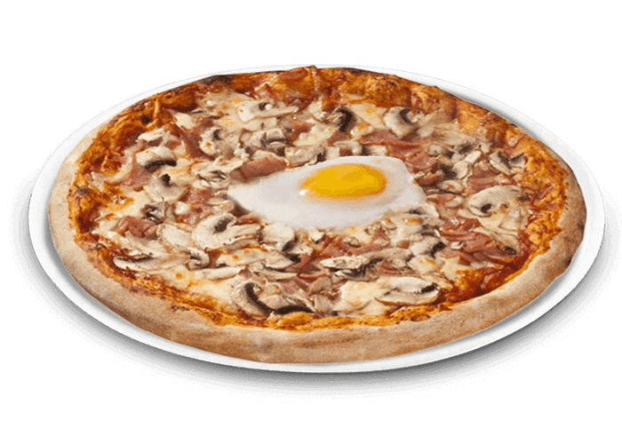 Tomate, fromage, oeuf, jambon, champignons, chèvre.