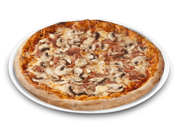Tomate, fromage, jambon, champignons.