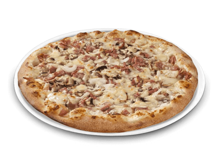 Tomate, fromage, lardons, champignons, oeuf.